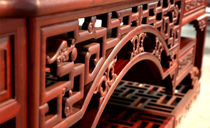 流程三雕刻工序 為了讓紅木家具看上去更美觀,在木工工序完成之后一般都會用一些或簡單或復(fù)雜的雕花來進行裝飾,也就是行業(yè)中所說的雕刻紋飾。雕刻紋飾必須在“認榫”完成后進行,因為“認榫”時需要修整,如果先做好雕花再開榫,紋理很難保證雕花部件都在同一平面上,而此時為了保證雕花...